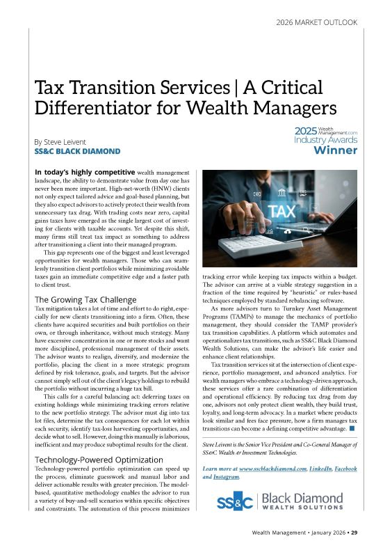 In this WealthManagement.com article, Steve Leivent discusses why tax-aware transitions are now a core client expectation and how technology-enabled portfolio optimization allows advisors to modernize portfolios while reducing unnecessary tax exposure.