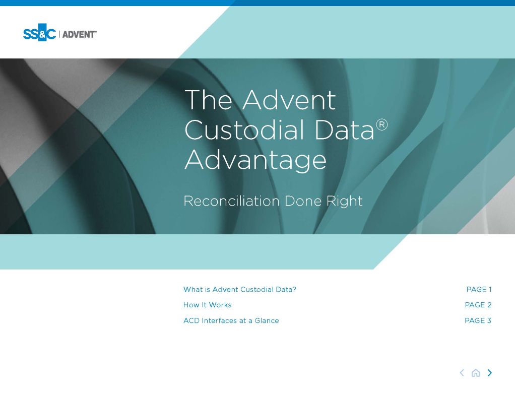 Reliable, reconciled data is non‑negotiable. Advent Custodial Data aggregates positions, transactions, and cash from hundreds of sources and delivers standardized T+1 files, fueling SS&C Black Diamond and other SS&C Advent systems with accuracy.